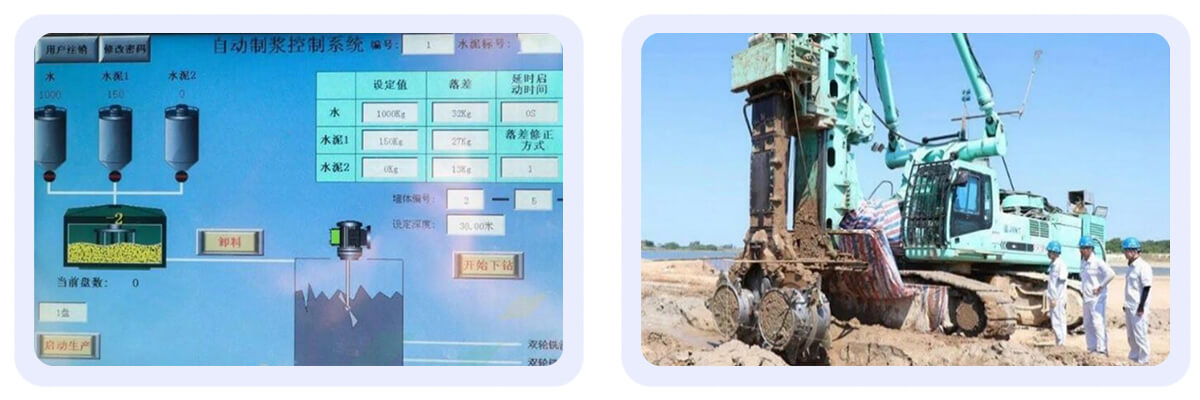引入圖像識(shí)別、移動(dòng)端APP等技術(shù),實(shí)現(xiàn)雙輪銑施工參數(shù)的數(shù)字化精細(xì)監(jiān)測。同時(shí),采用大量先進(jìn)的自動(dòng)化硬件設(shè)備,實(shí)現(xiàn)雙輪銑制漿、注漿系統(tǒng)自動(dòng)化操控,將制漿、注漿系統(tǒng)與雙輪銑鉆進(jìn)機(jī)械設(shè)備形成聯(lián)動(dòng),減少人力節(jié)約成本,降低水泥用量,提高防滲墻質(zhì)量。